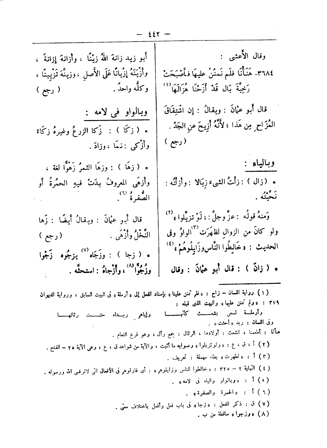 (¬7) ق: ذكر الفعل: «زجا» فى باب فعل وأفعل باختلاف معنى.