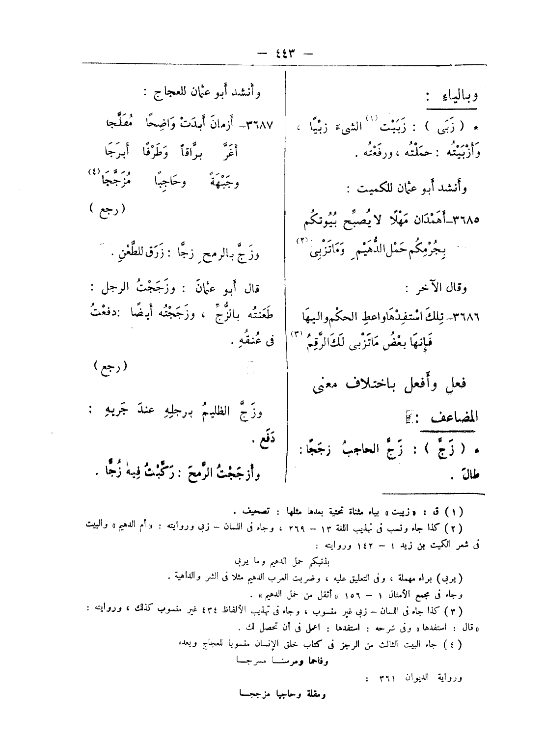 (¬3) كذا جاء فى اللسان - زبى غير منسوب، وجاء فى تهذيب الألفاظ 434 غير منسوب كذلك، وروايته: