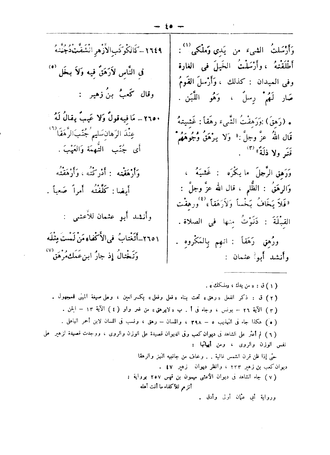 (¬5) هكذا جاء فى التهذيب 5 - 398، واللسان - رهق، ونسب فى اللسان لابن أحمر الباهلى.