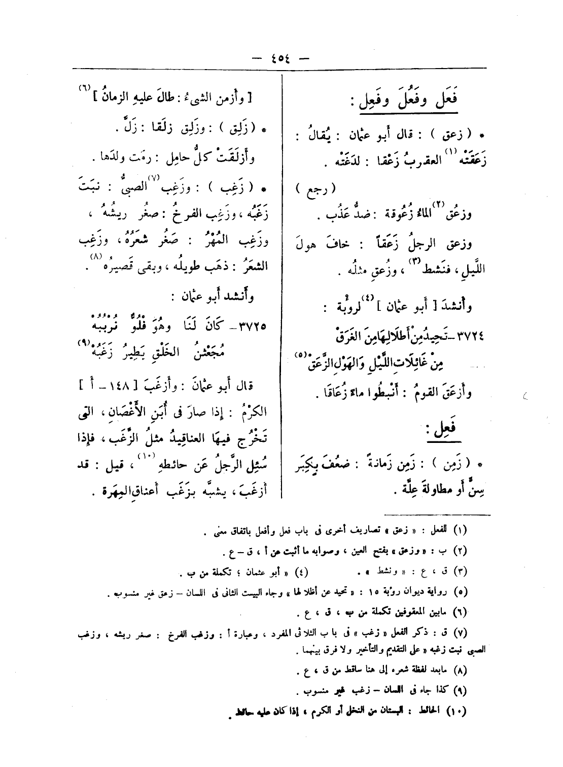 (¬1) الفعل: «زعق» تصاريف أخرى فى باب فعل وأفعل باتفاق معنى.