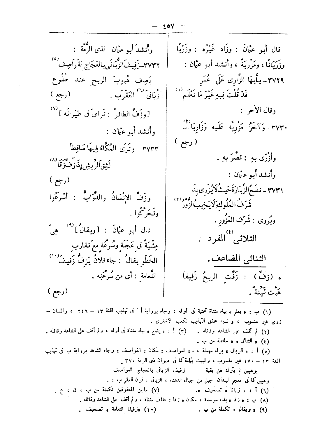 (¬8) ب: «زفا» بفاء موحدة، مكان «زقا» بقاف مثناة، ولم أقف على الشاهد وقائله.