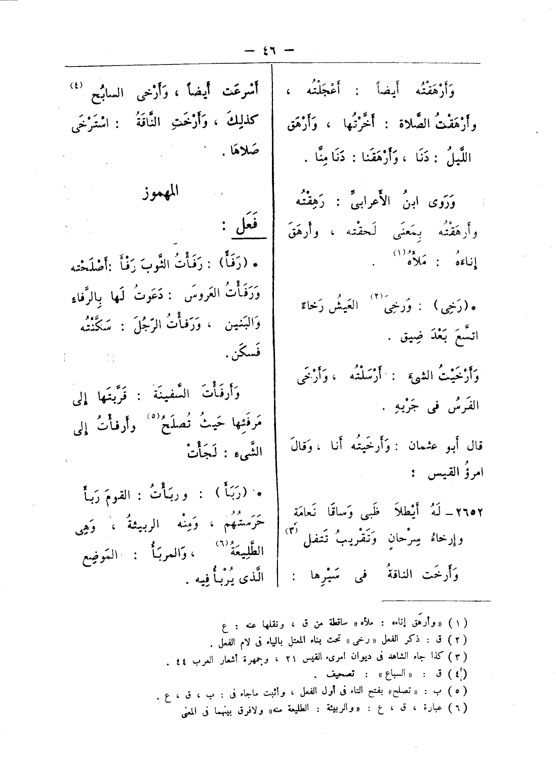 (¬2) ق: ذكر الفعل «رخى» تحت بناء المعتل بالياء فى لام الفعل.