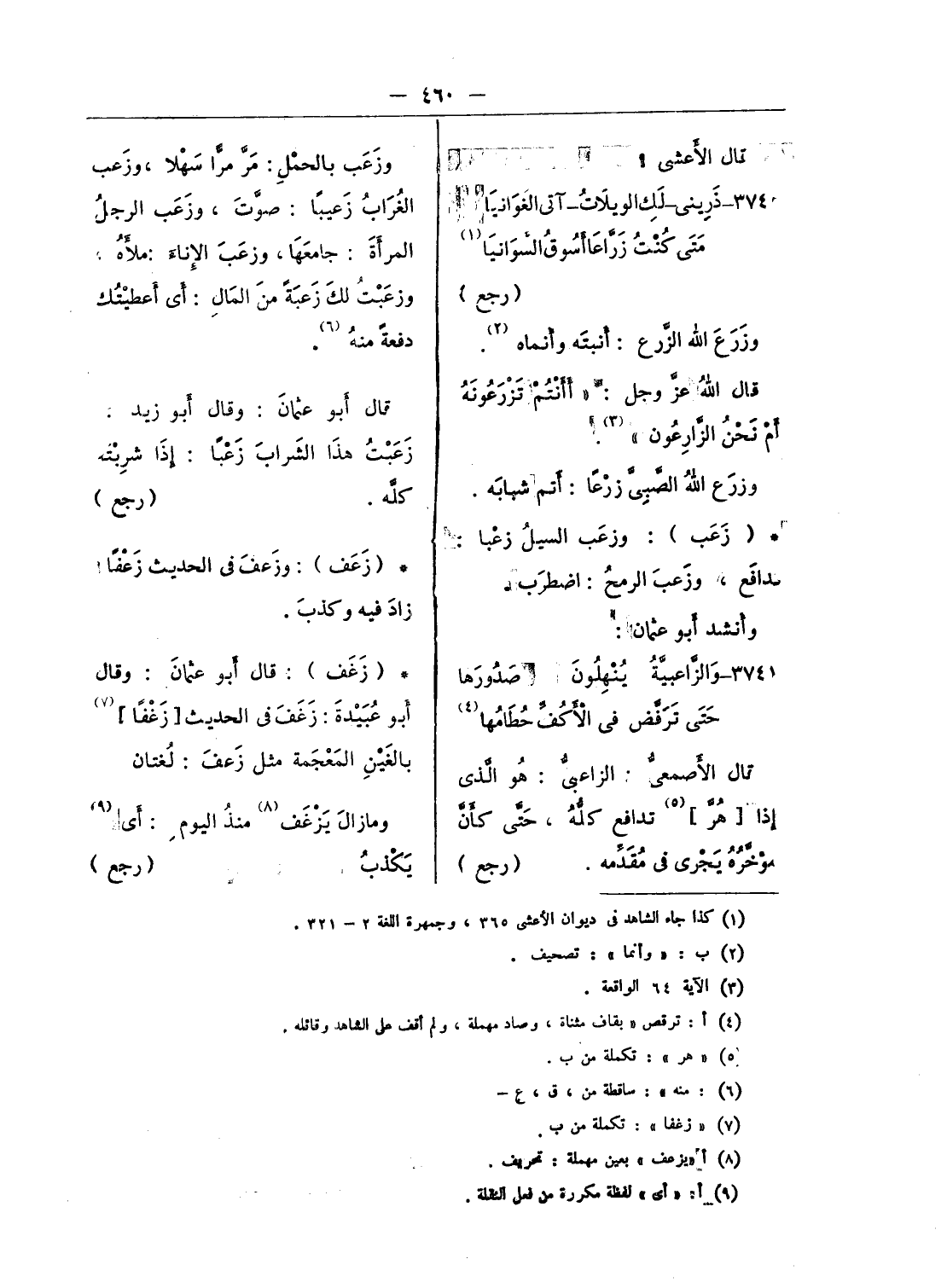 قال أبو عثمان: وقال أبو عبيدة: زغف فى الحديث [زغفا] (¬7) بالغين المعجمة مثل زعف: لغتان