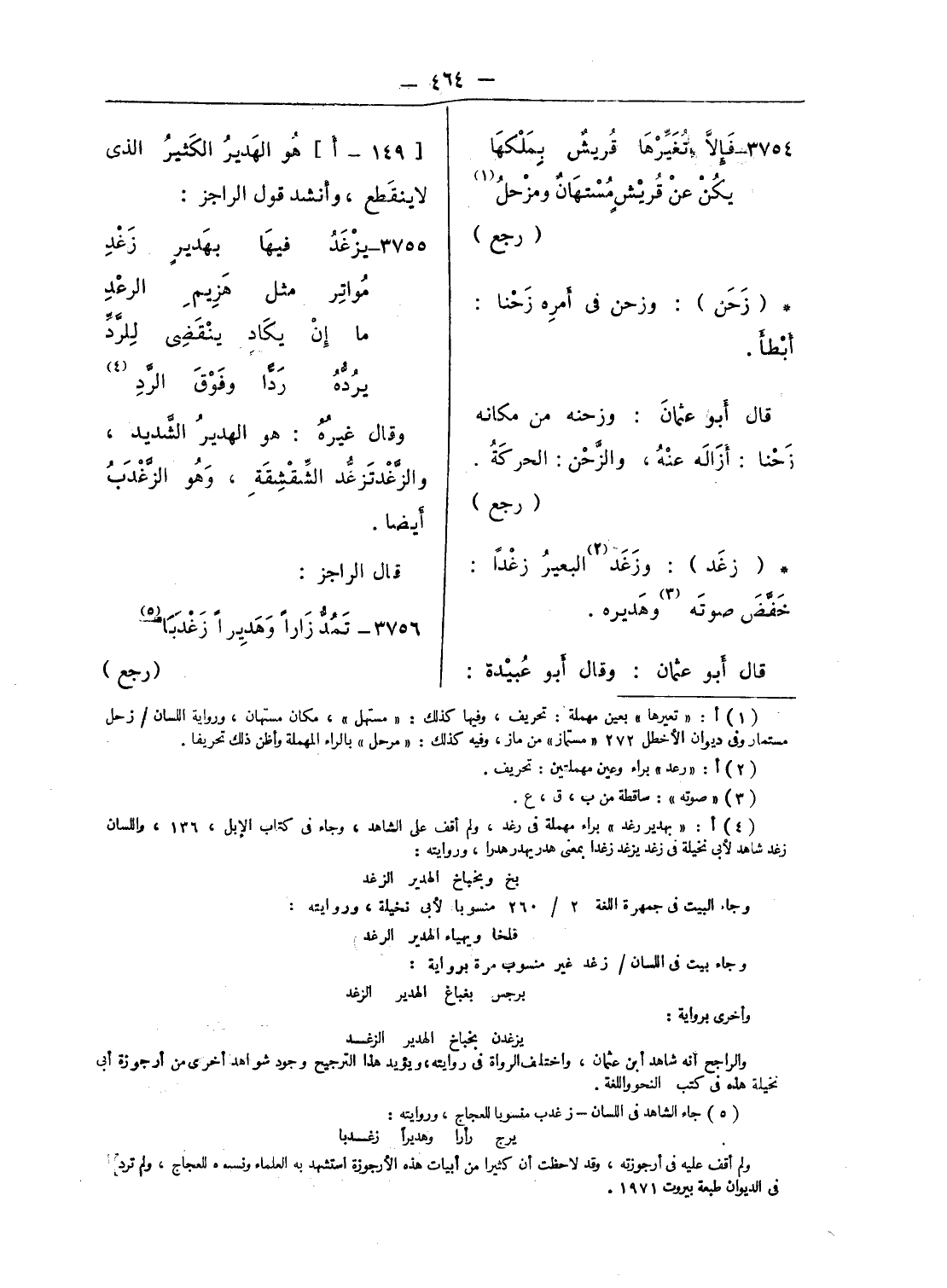(¬4) أ: «بهدير رغد» براء مهملة فى رغد، ولم أقف على الشاهد، وجاء فى كتاب الإبل، 136، واللسان زغد شاهد لأبى نخيلة فى زغد يزغد زغدا