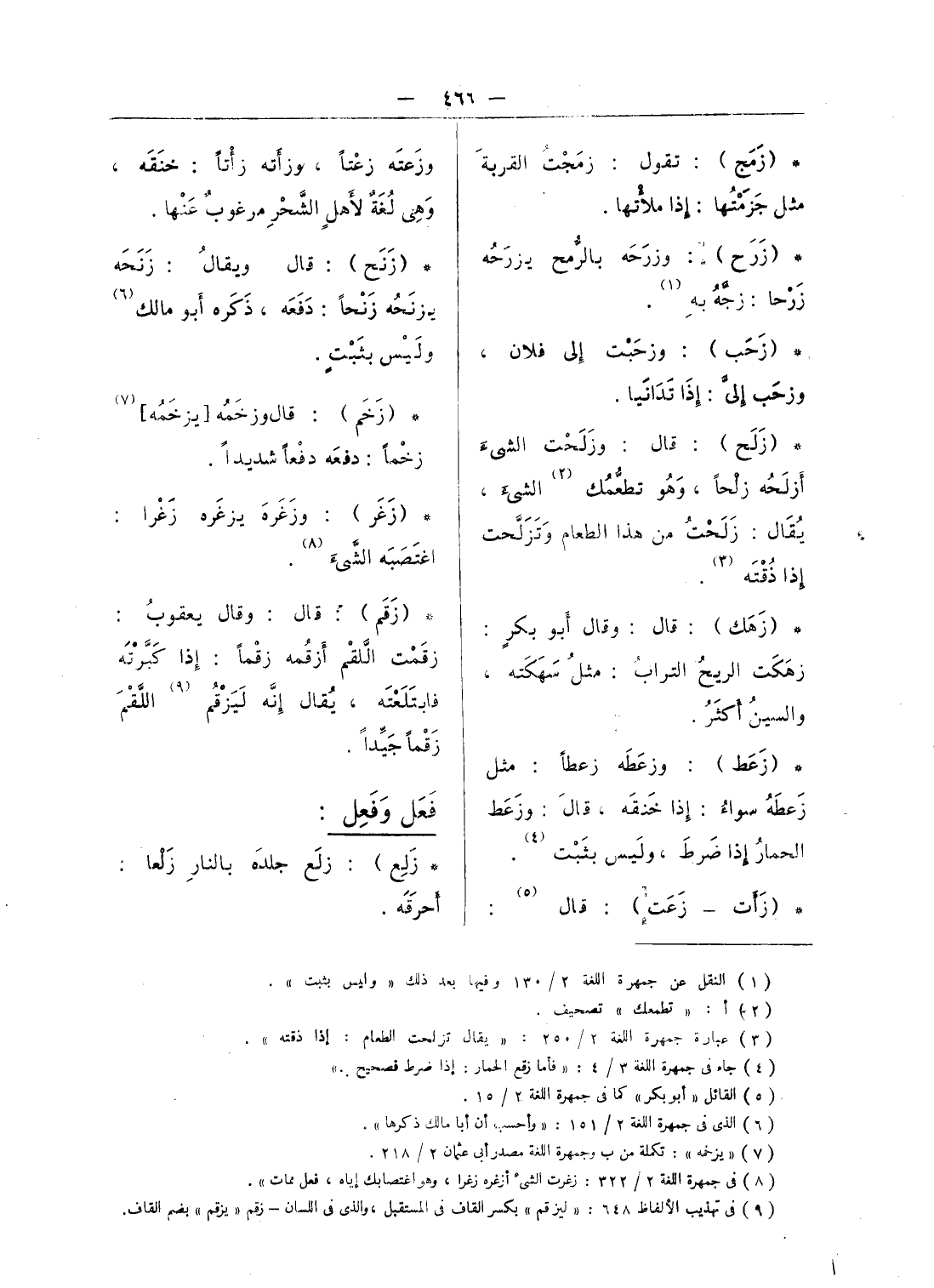 (¬9) فى تهذيب الألفاظ 648: «ليزقم» بكسر القاف فى المستقبل، والذى فى اللسان - زقم «يزقم» بضم القاف.