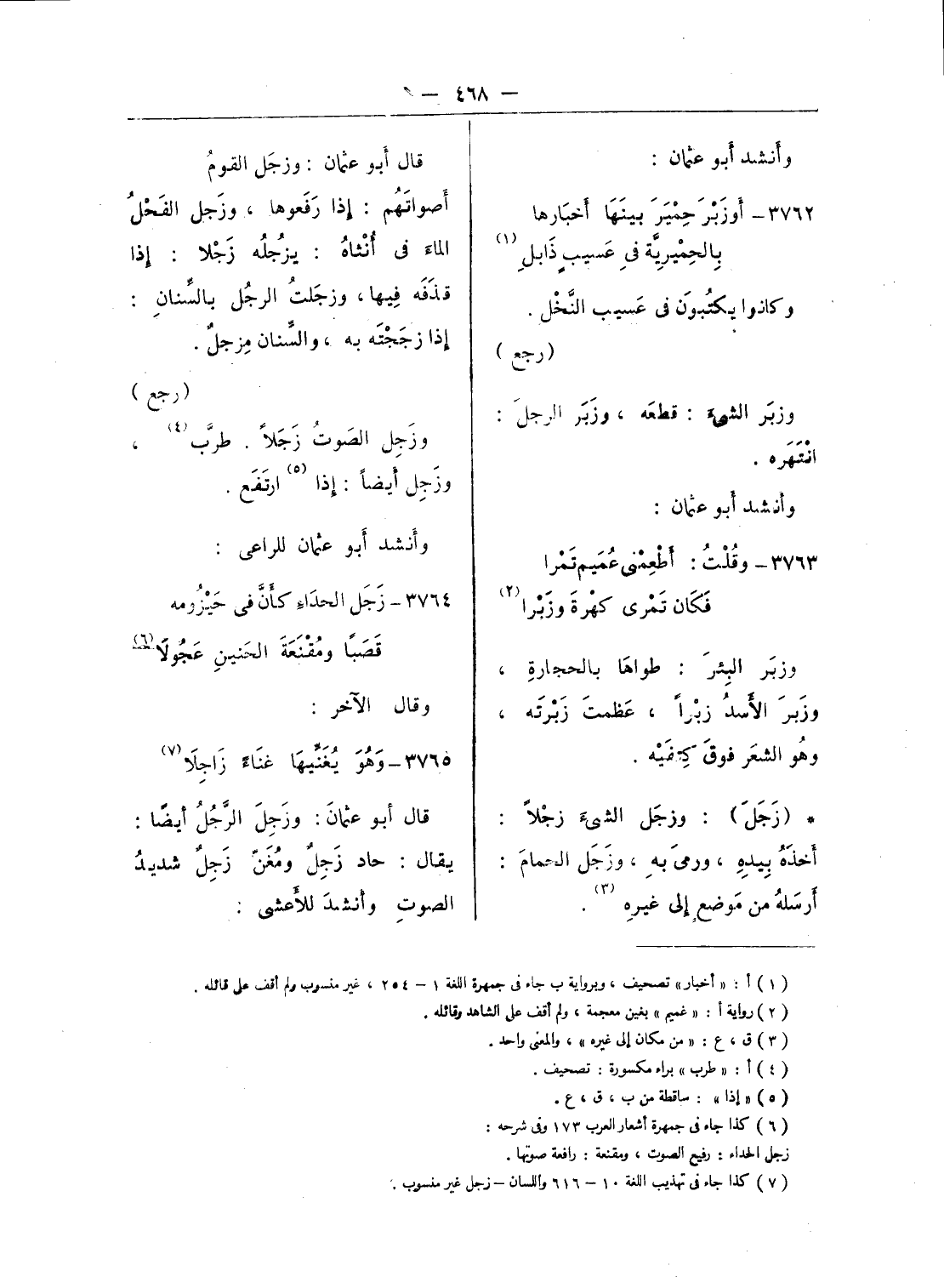 (¬7) كذا جاء فى تهذيب اللغة 10 - 616 واللسان - زجل غير منسوب.