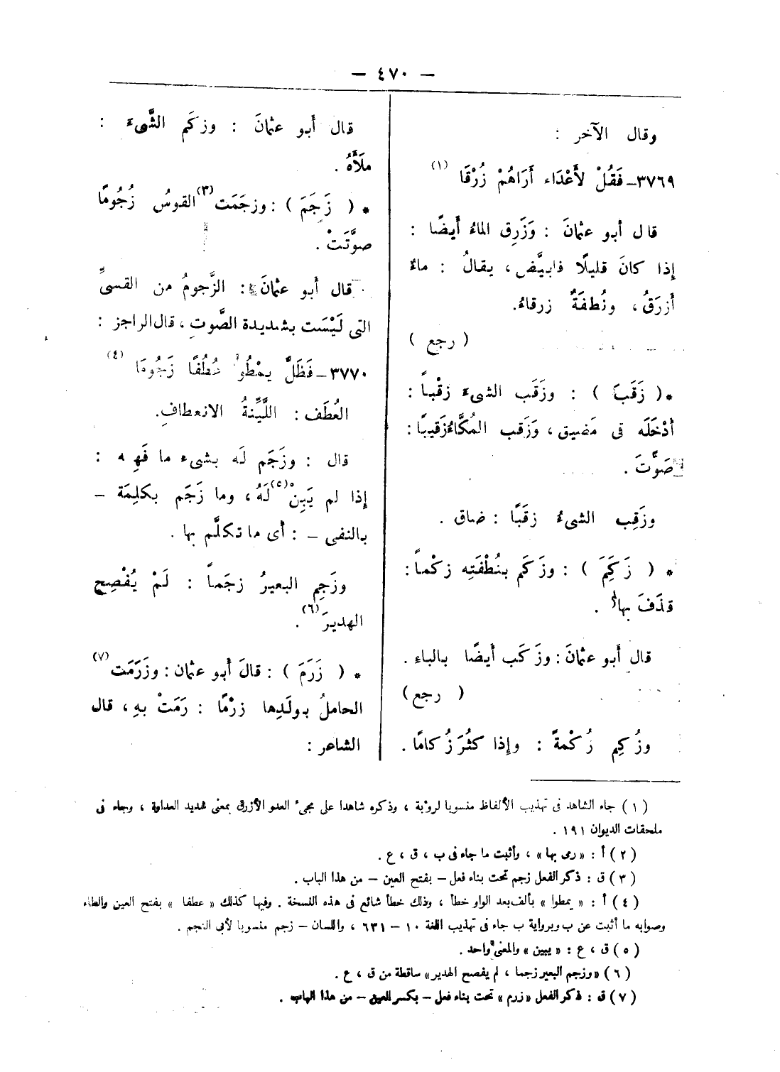 (¬6) «وزجم البعير زجما، لم يفصح الهدير» ساقطة من ق، ع.