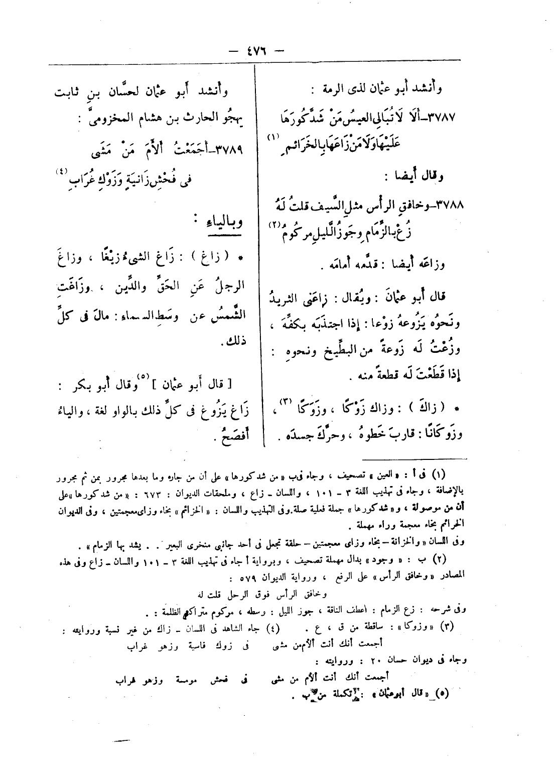 (¬4) جاء الشاهد فى اللسان - زاك من غير نسبة وروايته: