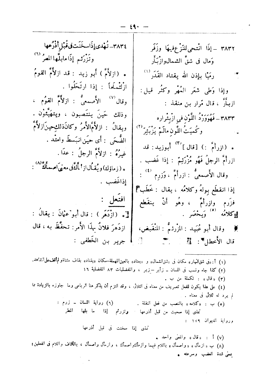 3833 - فهو ورد اللّون فى ازبئراره … وكميت اللّون ما لم يزبئر (¬2)