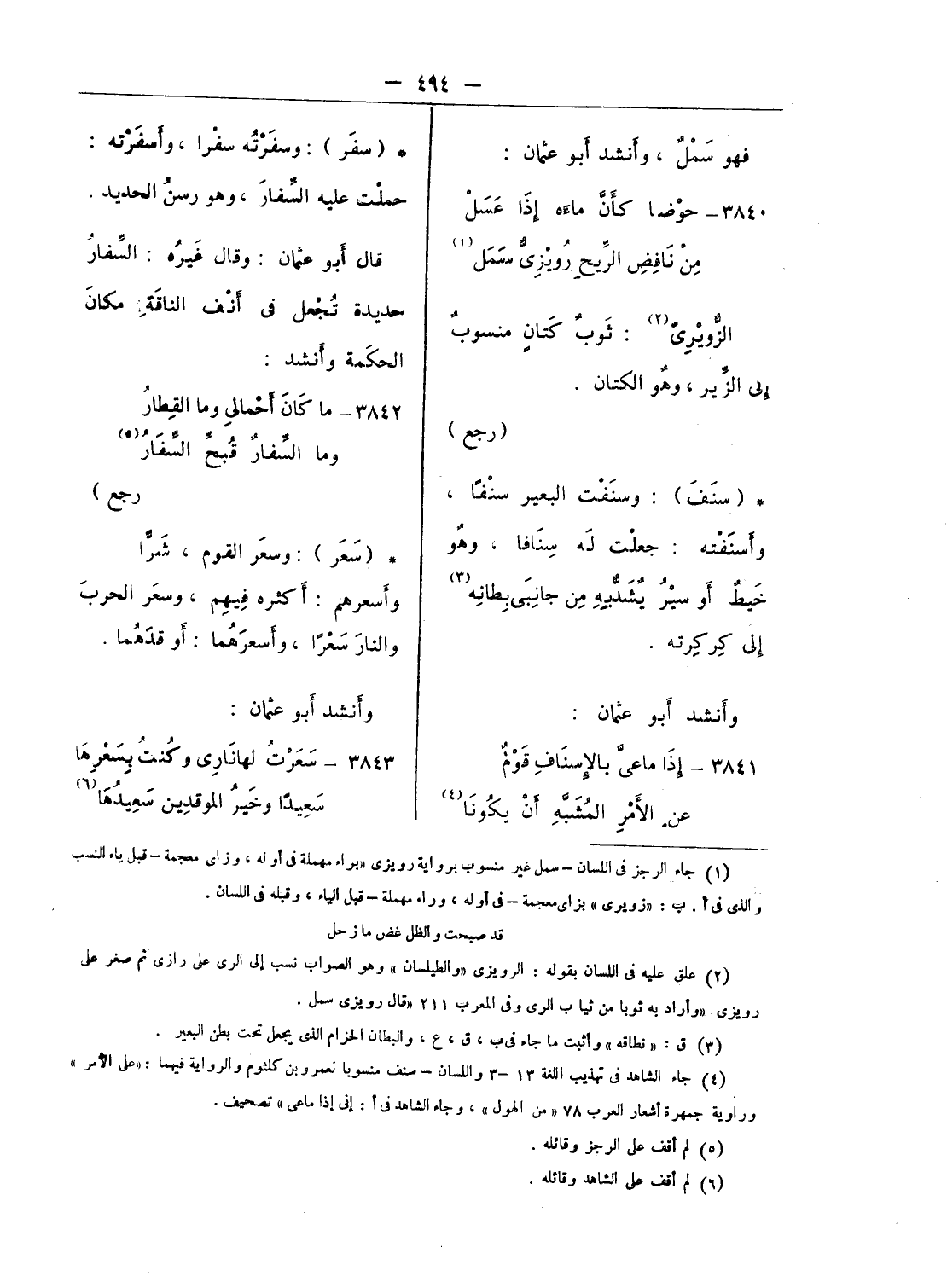 (¬1) جاء الرجز فى اللسان - سمل غير منسوب برواية رويزى «براء مهملة فى أوله، وزاى معجمة - قبل ياء النسب والذى فى أ. ب: «زويرى» بزاى معجمة - فى أوله، وراء مهملة - قبل الياء، وقبله فى اللسان.
