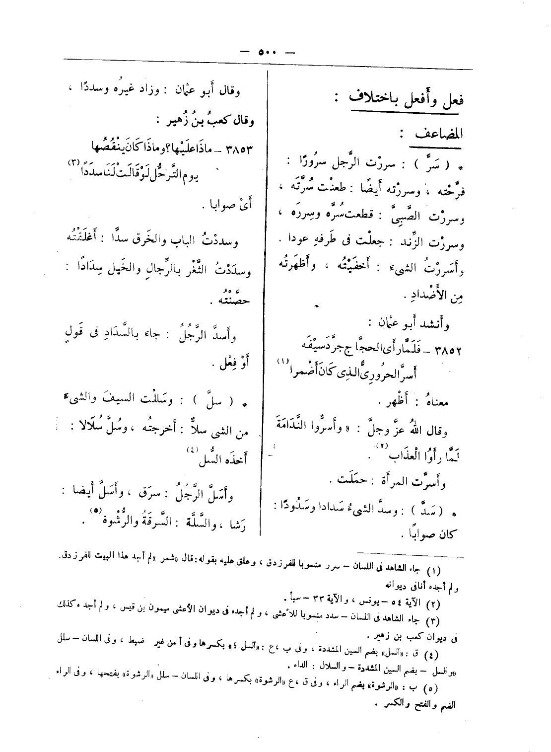 (¬3) جاء الشاهد فى اللسان - سدد منسوبا للأعشى، ولم أجده فى ديوان الأعشى ميمون بن قيس، ولم أجده كذلك فى ديوان كعب بن زهير.