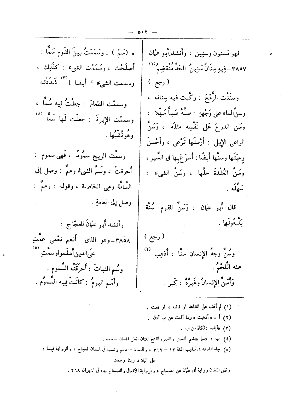 (¬5) جاء الشاهد فى تهذيب اللغة 12 - 319، واللسان - سمم ونسب فى اللسان للعجاج، والرواية فيهما: