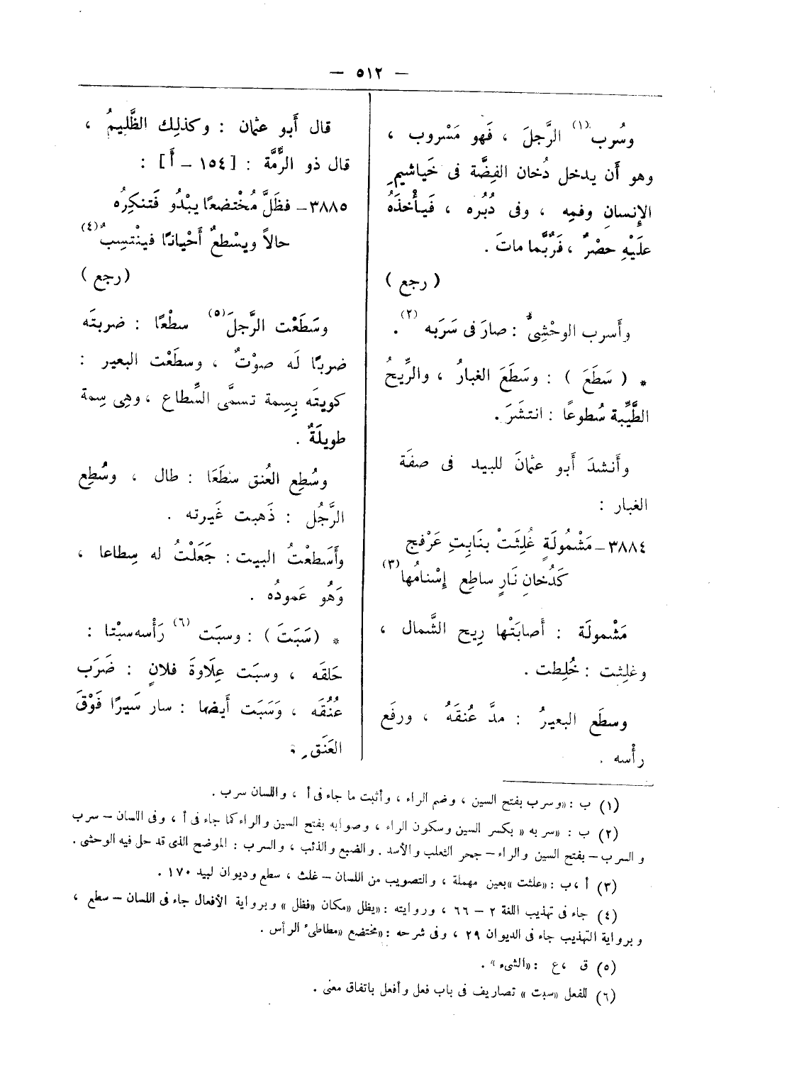 (¬1) ب: «وسرب بفتح السين، وضم الراء، وأثبت ما جاء فى أ، واللسان سرب