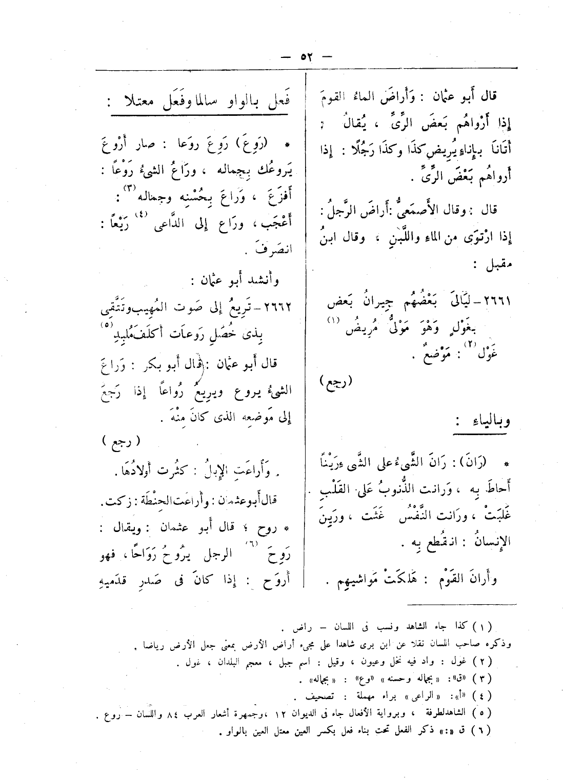 (¬5) الشاهد لطرفة، وبرواية الأفعال جاء فى الديوان 12، وجمهرة أشعار العرب 84 واللسان - روع.