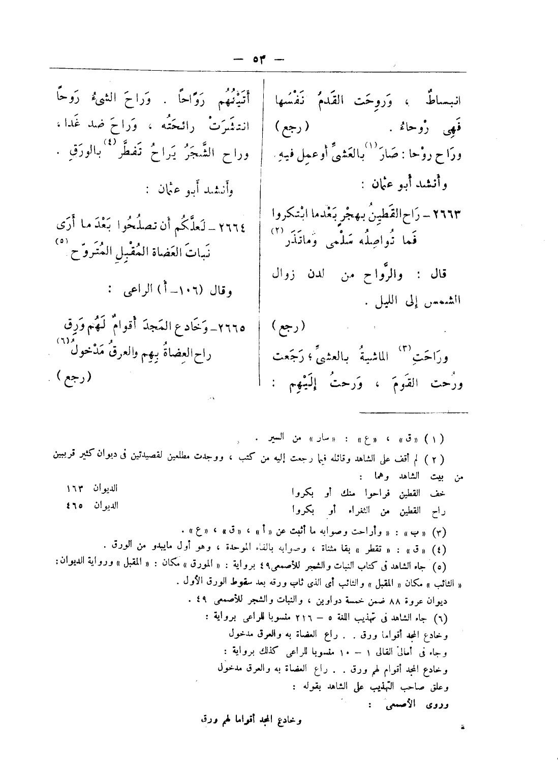 (¬5) جاء الشاهد فى كتاب النبات والشجر للأصمعى 49 برواية: «المورق» مكان: «المقبل» ورواية الديوان: