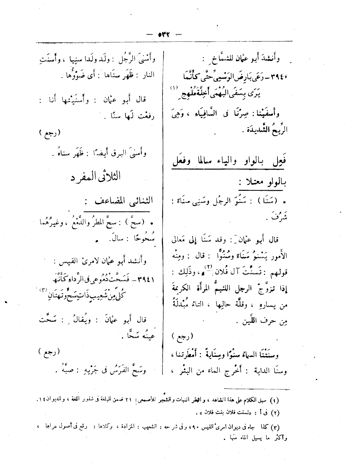 قال أبو عثمان: وقد سنا إلى معالى الأمور يسنو سناء وسنوّا: قال: ومنه قولهم: تسنّت آل فلان (¬2)، وذلك: