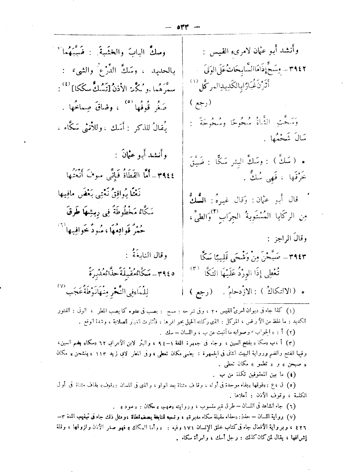 (¬2) أ: «الجواب» وصوابه ما أثبت عن ب، واللسان - سك.
