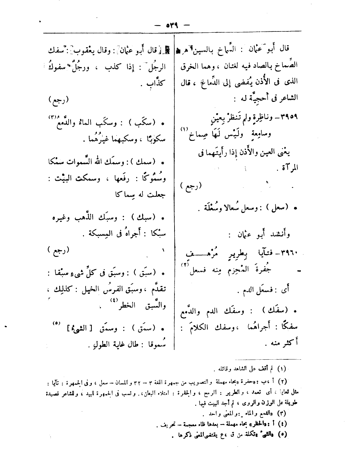قال أبو عثمان: السّماخ بالسين هو الصّماخ بالصاد فيه لغتان، وهما الخرق الذى فى الأذن يفضى إلى الدّماغ، قال الشاعر فى أحجيّة له:
