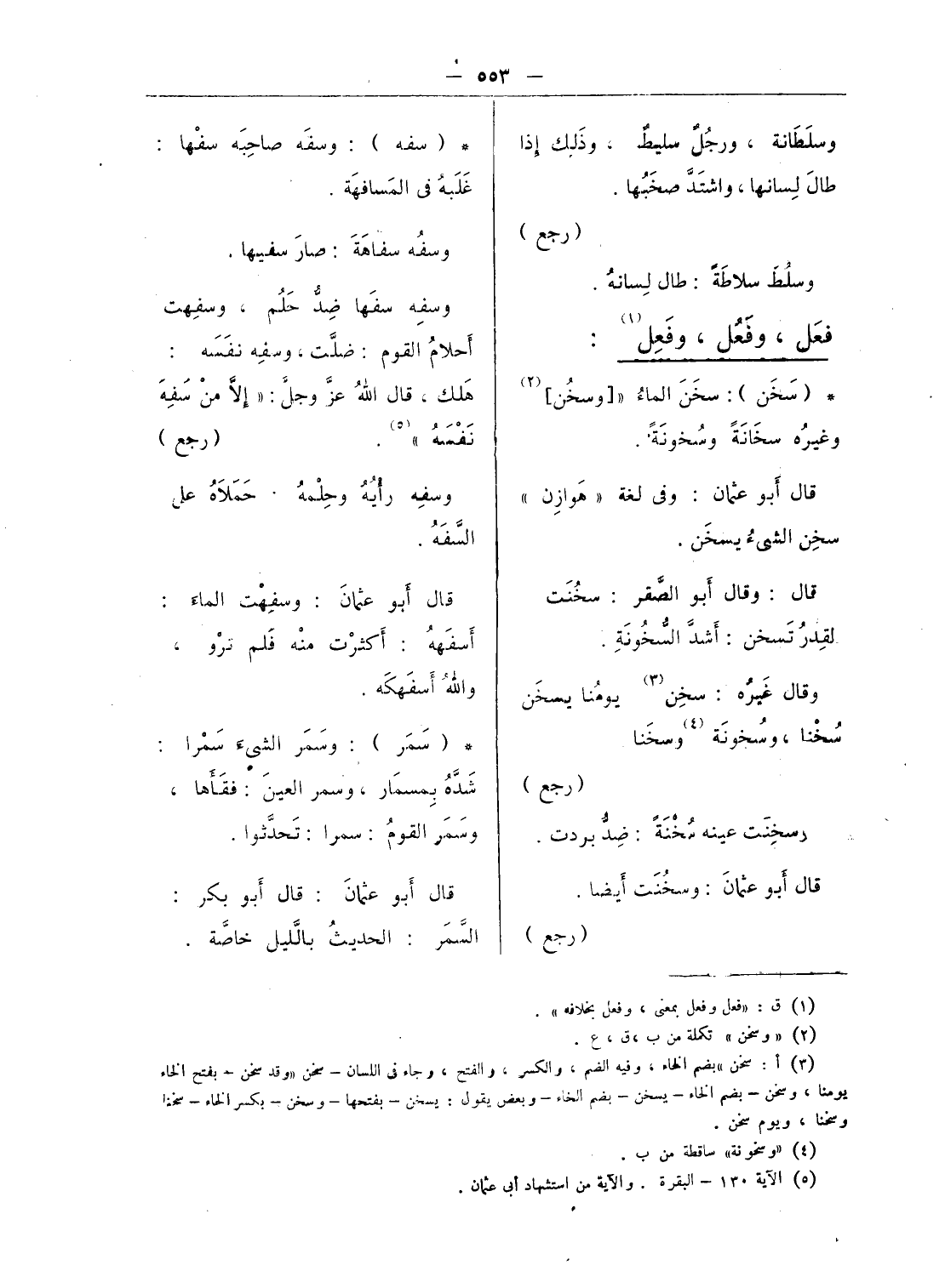 (¬3) أ: سخن» بضم الخاء، وفيه الضم، والكسر، والفتح، وجاء فى اللسان - سخن «وقد سخن - بفتح الخاء يومنا، وسخن - بضم الخاء - يسخن - بضم الخاء - وبعض يقول: يسخن - بفتحها - وسخن - بكسر الخاء - سخنا وسخنا، ويوم سخن.