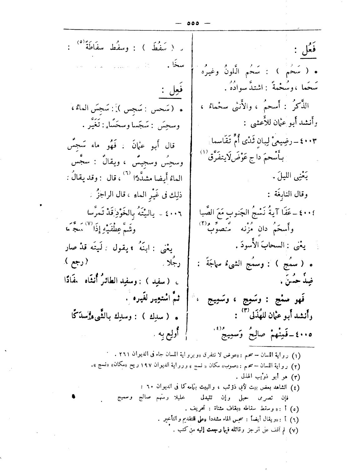 (¬2) رواية اللسان - سحم: «صوب» مكان «نسج» ورواية الديوان 197 ريح «مكان» «نسج».