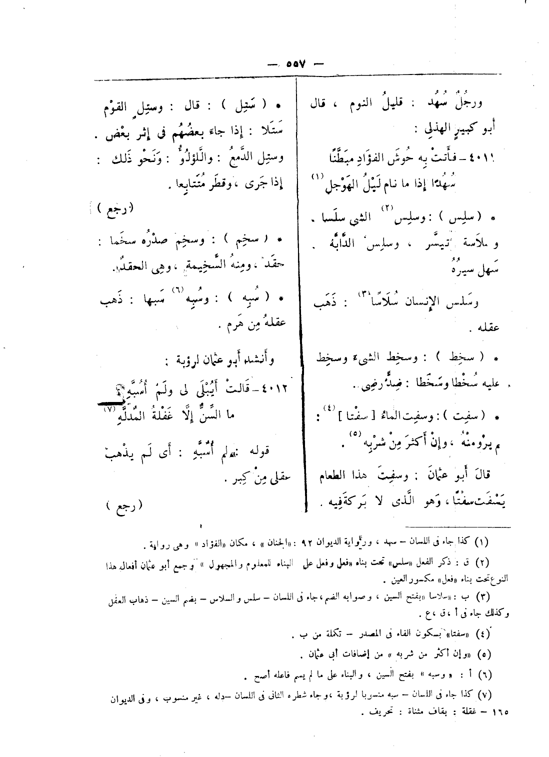 (¬3) ب: «سلاسا «بفتح السين، وصوابه الضم، جاء فى اللسان - سلس والسلاس - بضم السين - ذهاب العقل وكذلك جاء فى أ، ق، ع.
