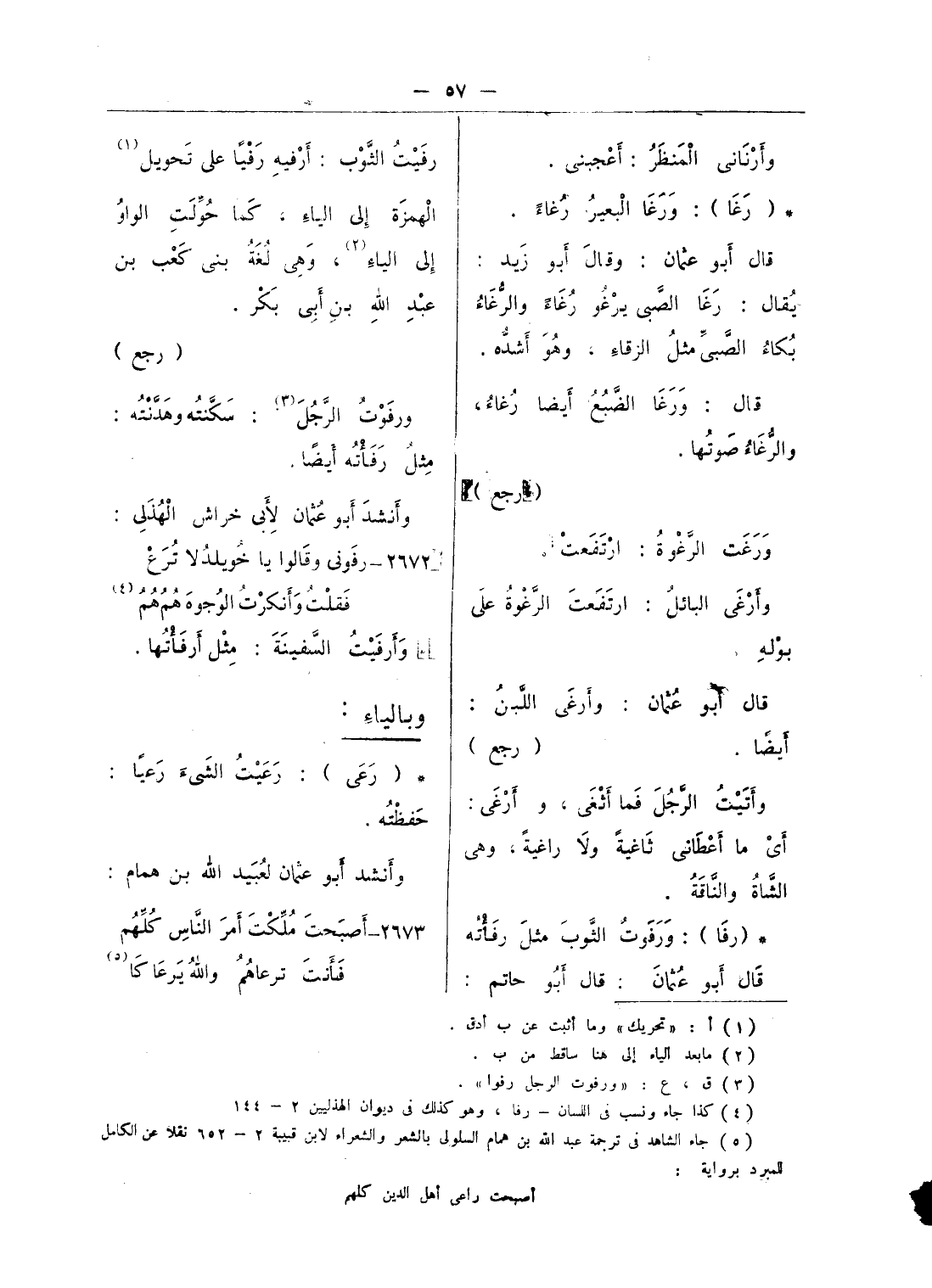 (¬4) كذا جاء ونسب فى اللسان - رفا، وهو كذلك فى ديوان الهذليين 2 - 144.
