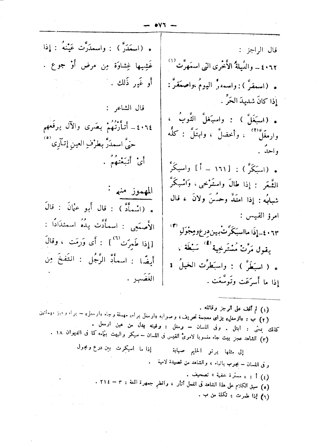 (¬5) سبق الكلام على هذا الشاهد فى الفعل أتأر، وانظر جمهرة اللغة: 3 - 214.