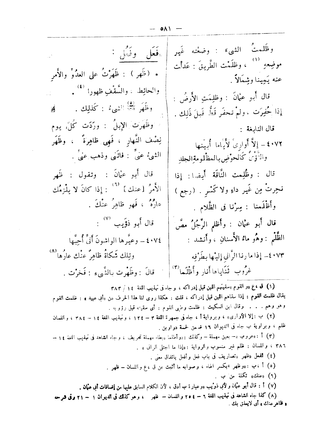 (¬4) للفعل «ظهر «تصاريف فى باب فعل وأفعل باتفاق معنى.
