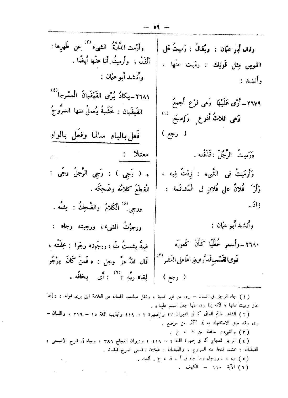 (¬4) الرجز العجاج كما فى جمهرة اللغة 2 - 418، وديوان العجاج 386، وجاء فى شرح الأصمعى: