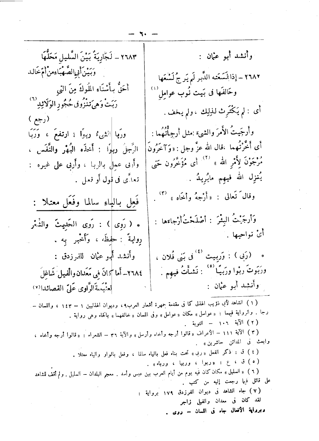 (¬7) جاء الشاهد فى ديوان الفرزدق 179 برواية: