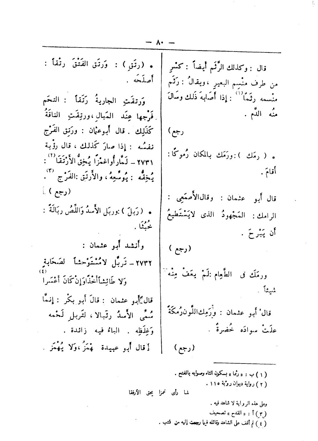 (¬1) ب: «رثما» بسكون الثاء وصوابه بالفتح.