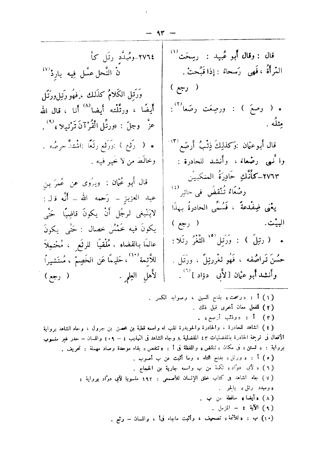 (¬5) أ: «ورتل» بفتح التاء، وما أثبت عن ب أصوب.