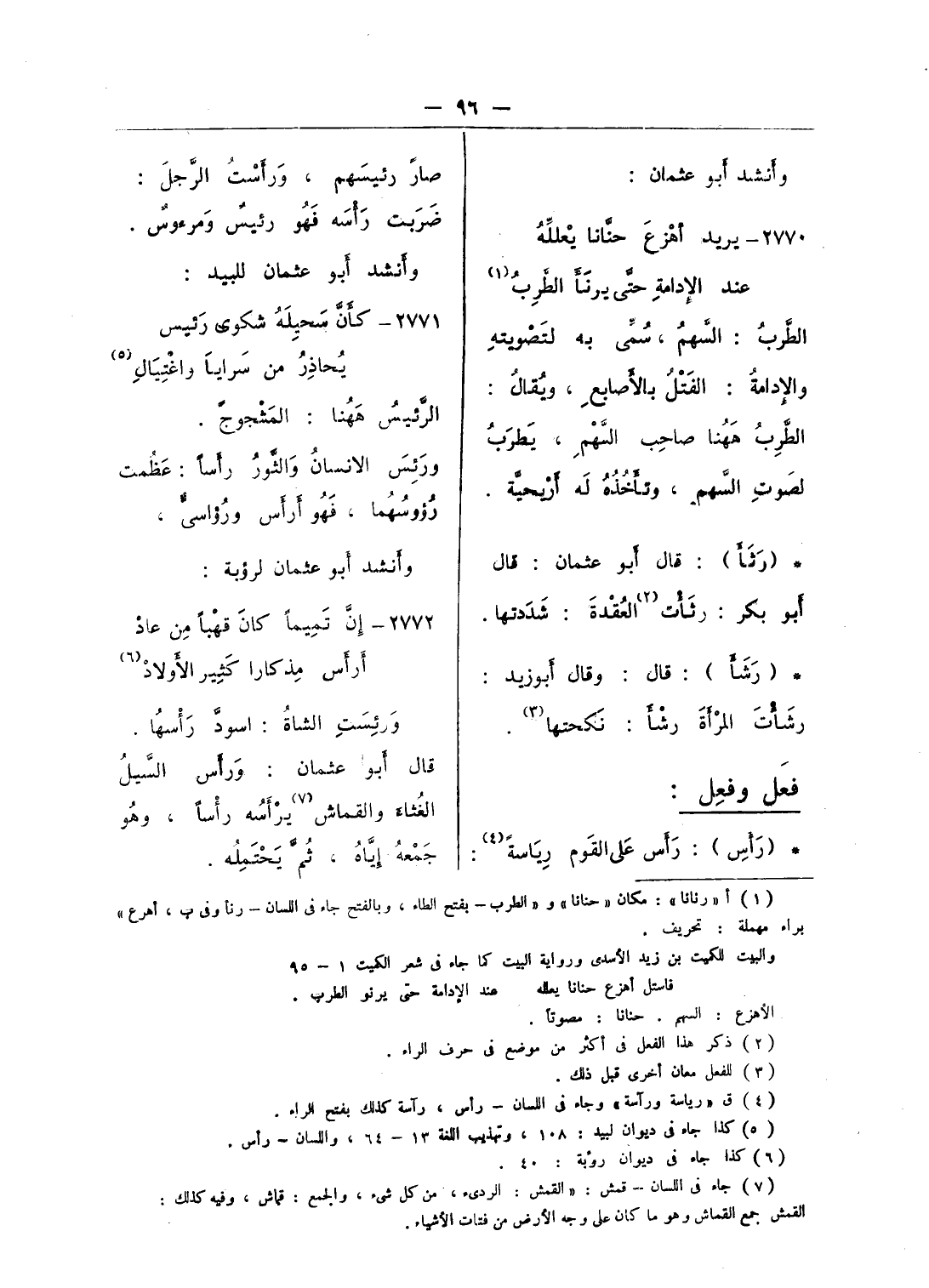(¬5) كذا جاء فى ديوان لبيد: 108، وتهذيب اللغة 13 - 64، واللسان - رأس.