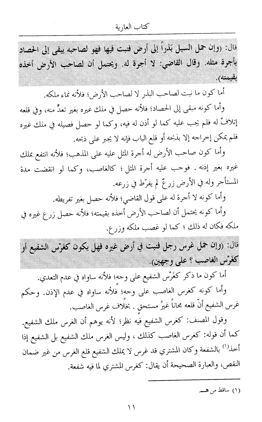وقول المصنف: كغرس الشفيع فيه نظر؛ لأنه يوهم أن الغرس ملك الشفيع. كما أن قوله: كغرس الغاصب كذلك، وليس الغرس ملك الشفيع بل الشفيع إذا أخذ (¬1) بالشفعة وكان المشتري قد غرس لا يملك الشفيع قلع الغرس من غير ضمان النقص، والعبارة الصحيحة أن يقال: كغرس المشتري لما فيه شفعة.