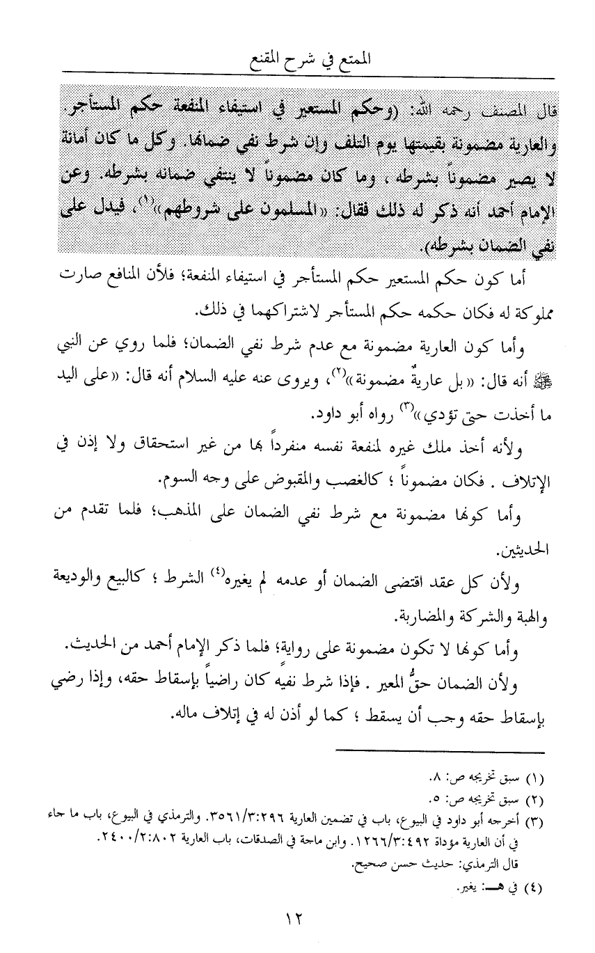 (¬3) أخرجه أبو داود في البيوع، باب في تضمين العارية 3: 296/ 3561. والترمذي في البيوع، باب ما جاء في أن العارية مؤداة 3: 492/ 1266. وابن ماجة في الصدقات، باب العارية 2: 802/ 2400.