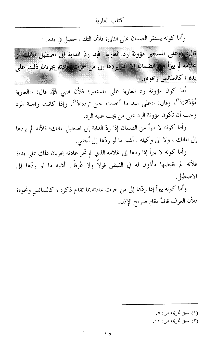 قال: (وعلى المستعير مؤونة رد العارية. فإن ردّ الدابة إلى اصطبلِ المالك أو غلامهِ لم يبرأ من الضمان إلا أن يردها إلى من جرت عادته بجريان ذلك على يده؛ كالسَائسِ ونحوه).