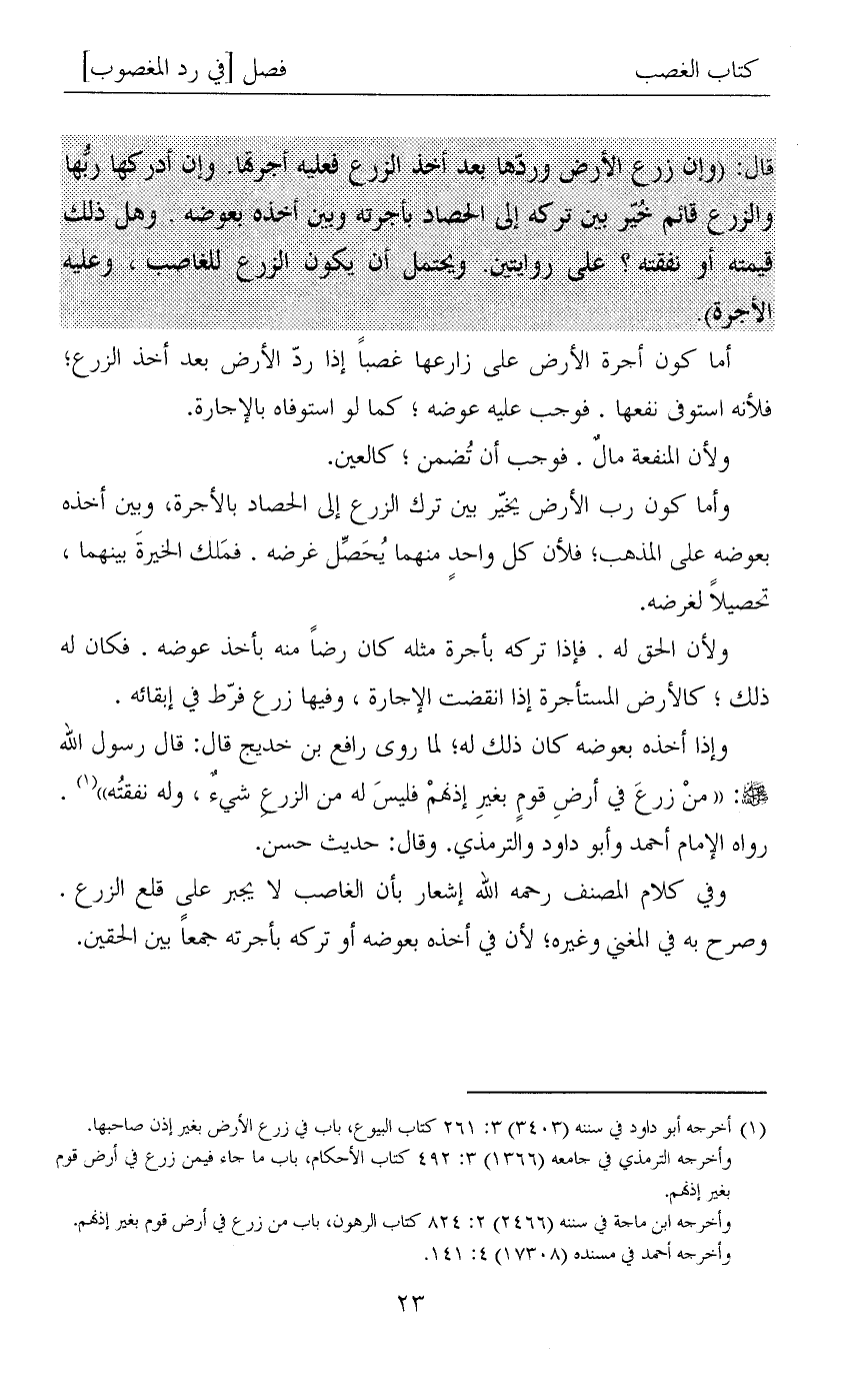 (¬1) أخرجه أبو داود في سننه (3403) 3: 261 كتاب البيوع، باب في زرع الأرض بغير إذن صاحبها.