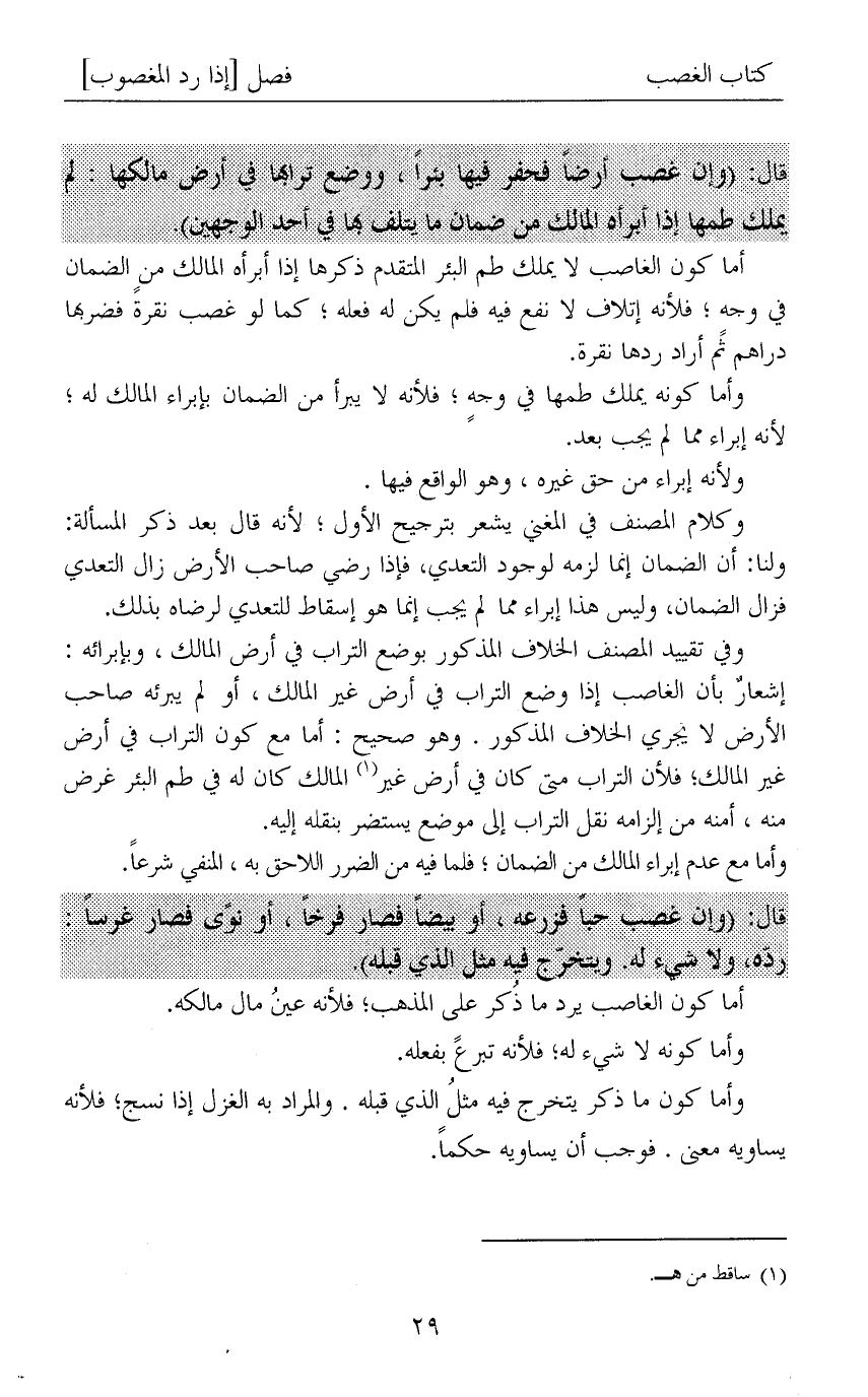 قال: (وإن غصب أرضاً فحفر فيها بئراً، ووضع ترابها في أرض مالكها: لم يملك طمها إذا أبرأه المالك من ضمان ما يتلف بها في أحد الوجهين).