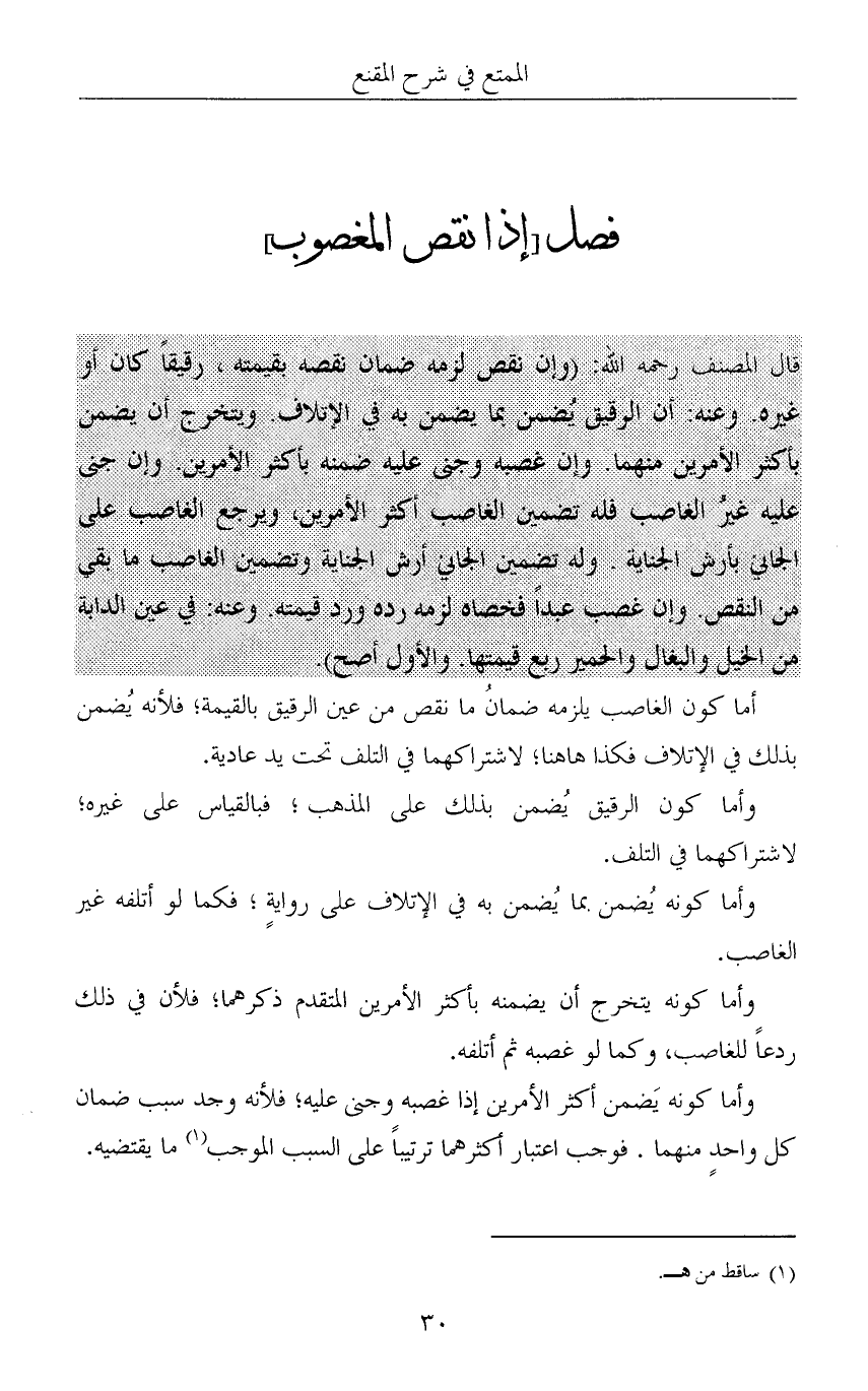 فصل [إذا نقص المغصوب]