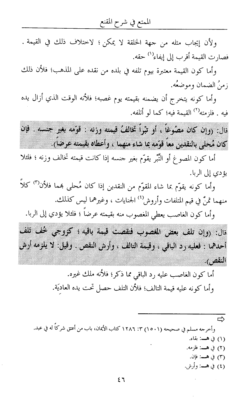 وأما كون الغاصب يعطي المغصوب منه بقيمته عرضاً؛ فلئلا يؤدي إلى الربا.