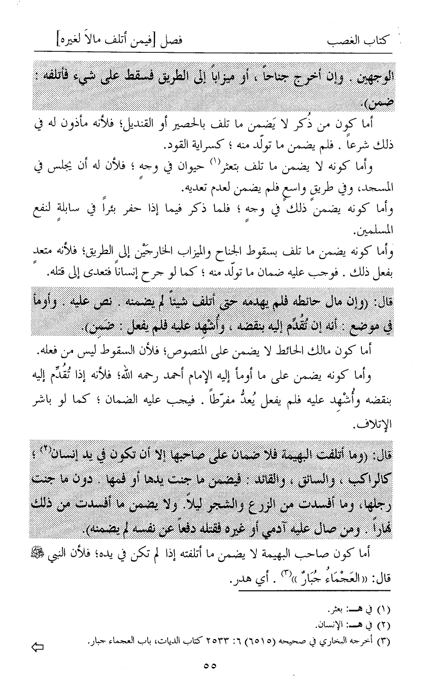 (¬3) أخرجه البخاري في صحيحه (6515) 6: 2533 كتاب الديات، باب العجماء جبار.