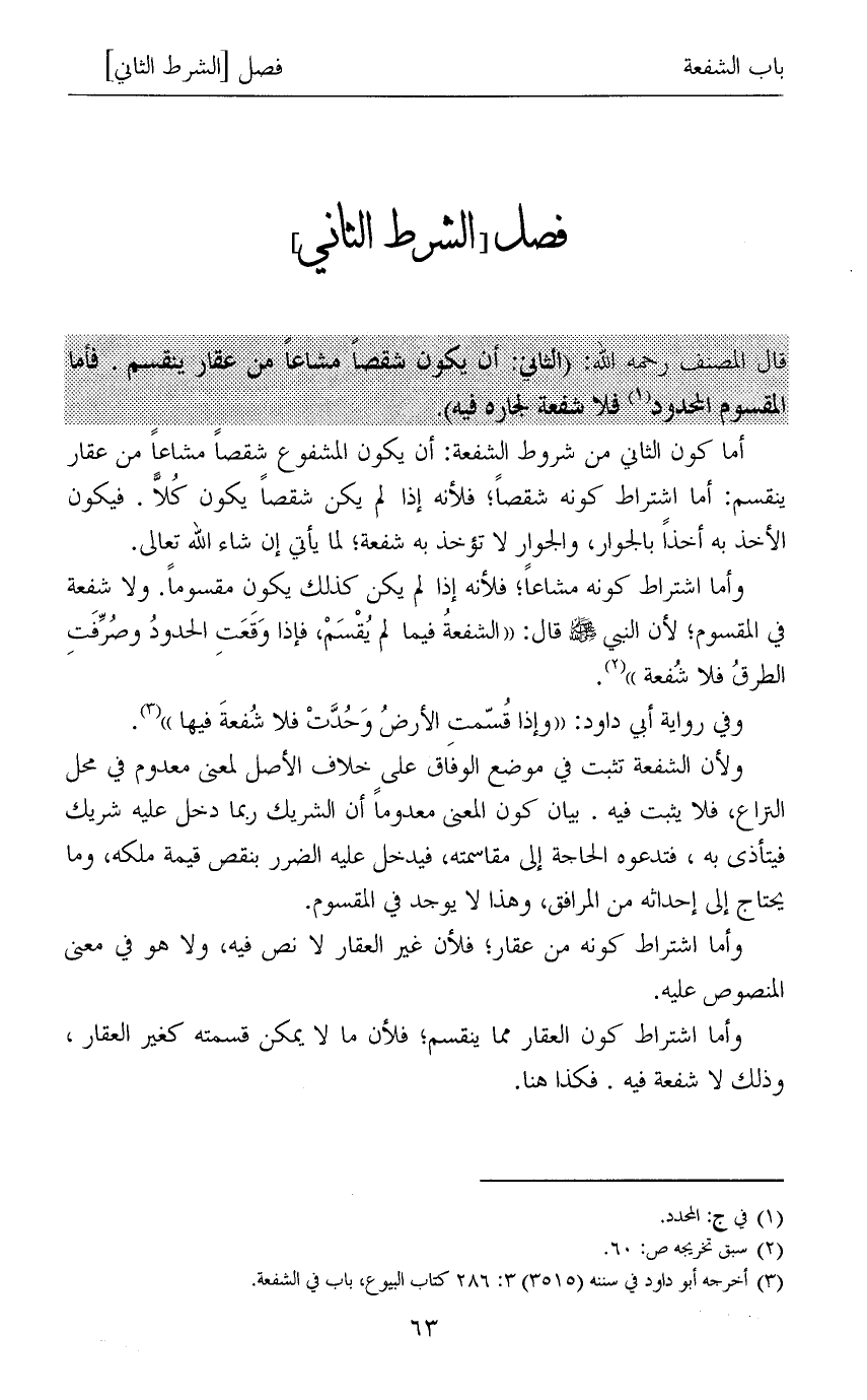 (¬3) أخرجه أبو داود في سننه (3515) 3: 286 كتاب البيوع، باب في الشفعة.