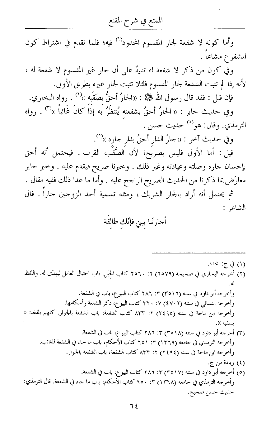 (¬5) أخرجه أبو داود في سننه (3517) 3: 286 كتاب البيوع، باب في الشفعة.