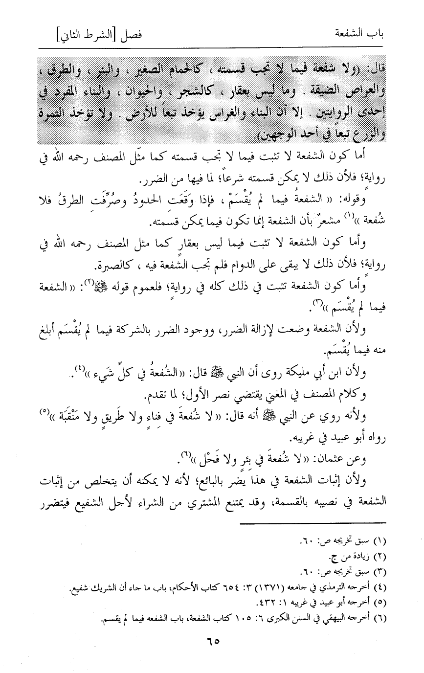 (¬6) أخرجه البيهقي في السنن الكبرى 6: 105 كتاب الشفعة، باب الشفعه فيما لم يقسم.