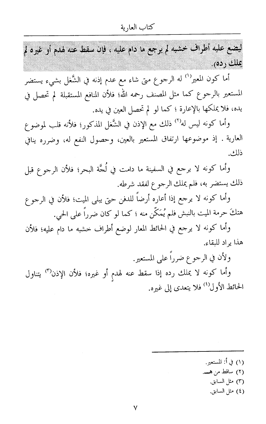 وأما كونه ليس له (¬2) ذلك مع الإذن في الشَّغل المذكور؛ فلأنه قلب لموضوع العارية. إذ موضوعها ارتفاق المستعير بالعين، وحصول النفع له، وضرره ينافي ذلك.