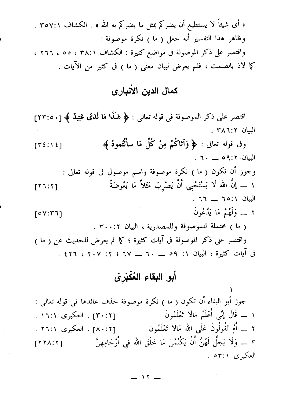 واقتصر على ذكر الموصولة في آيات كثيرة؛ كما لم يعرض للحديث عن (ما) في آيات كثيرة، البيان 1: 59 - 60 - 67؛ 2: 207، 426.