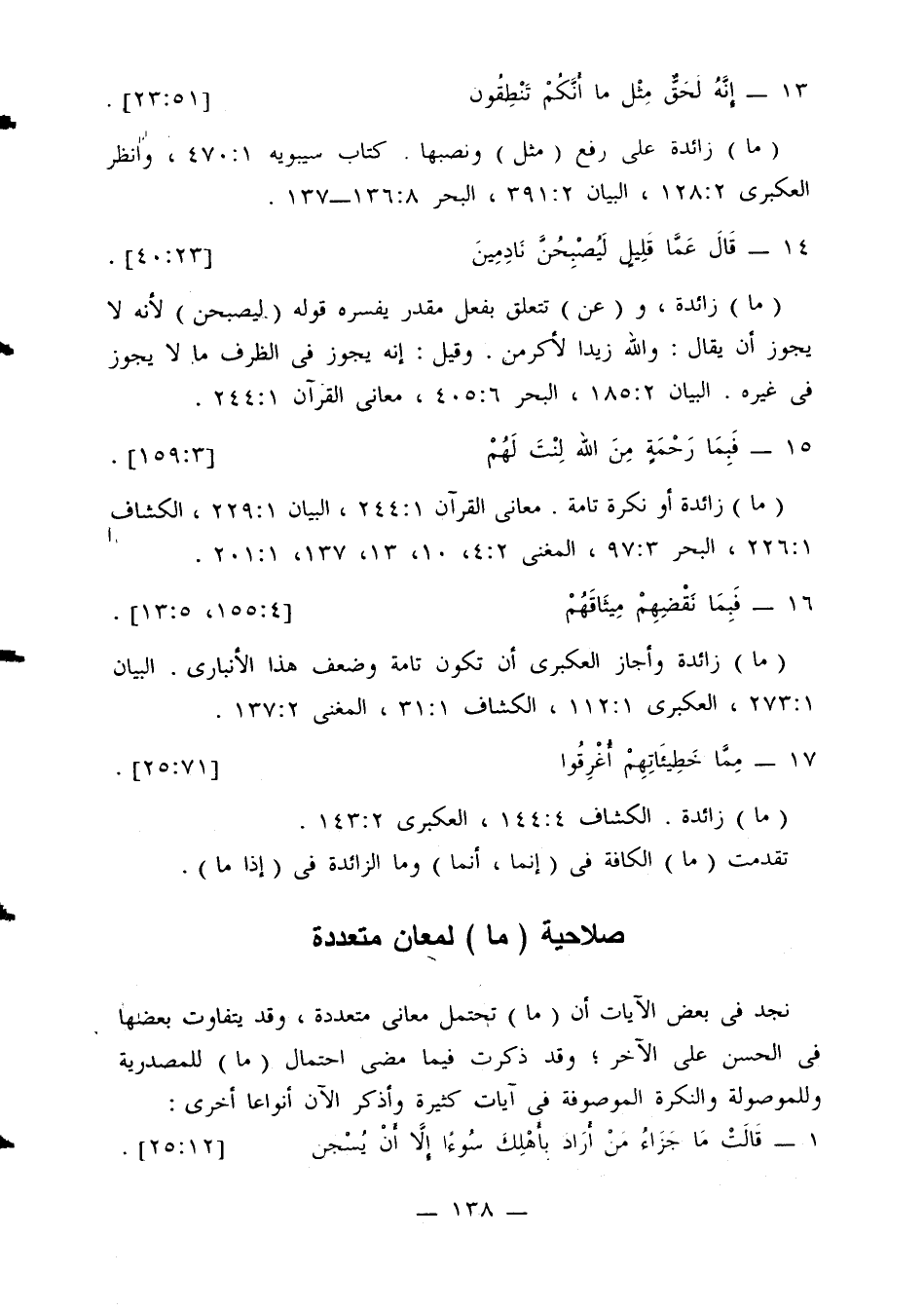 (ما) زائدة أو نكرة تامة. معاني القرآن 1: 244، البيان 1: 229، الكشاف 1: 226، البحر 3: 97، المغني 2: 4، 10، 13، 137، 1: 201.