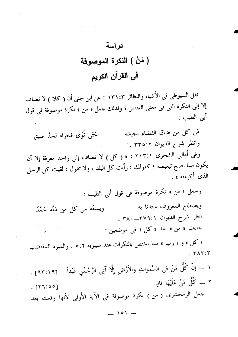 نقل السيوطي في الأشباه والنظائر 3: 131: عن ابن جني أن (كلا) لا تضاف إلا إلى النكرة التي في معنى الجنس؛ ولذلك جعل «من» نكرة موصوفة في قول أبي الطيب: