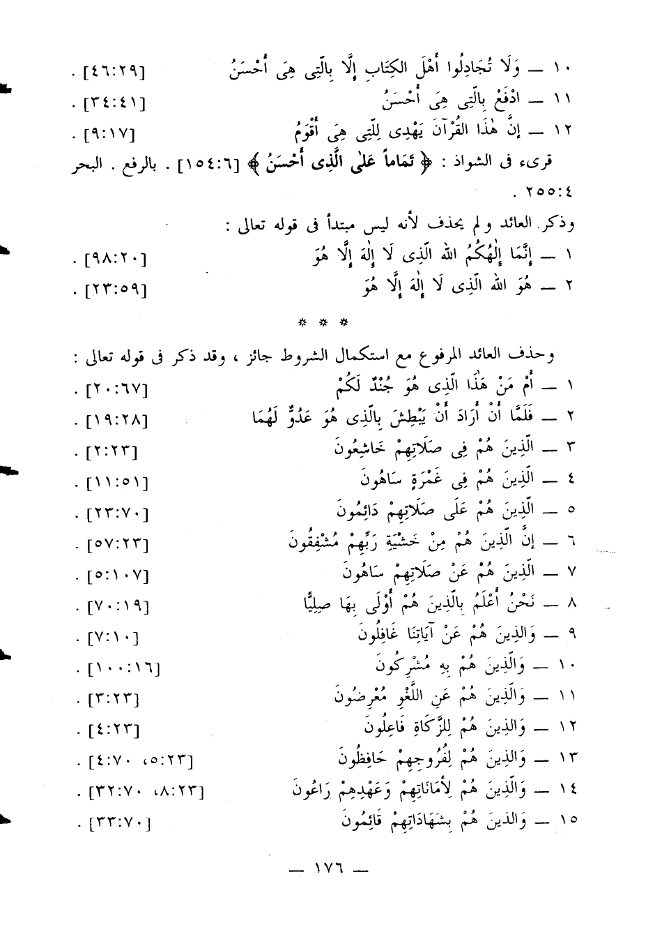 قرئ في الشواذ: {تماما على الذي أحسن} [6: 154]. بالرفع. البحر 4: 255.