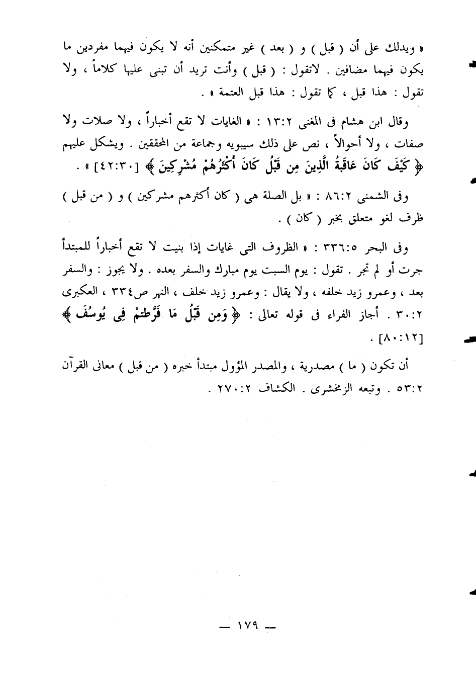 وفي الشمني 2: 86: «بل الصلة هي (كان أكثرهم مشركين) و (من قبل) ظرف لغو متعلق بخبر (كان).
